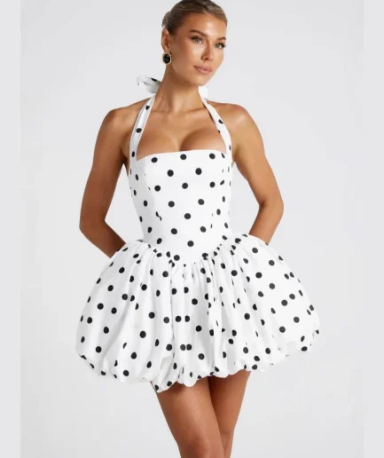 Select options This product has multiple variants. The options may be chosen on the product page Add to wishlist CompareSummer Elegant Backless Pleated Lace-up Halter Short Dress Women Off Shoulder Sleeve Puff Hem A-line Party Club Women Mini Dress