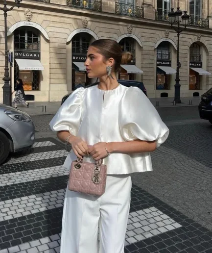 RedPeony 2025 Sping Summer Fashion Lady Tops Women White Lantern Short Sleeve Loose Female Shirts Satin Elegant Ruffle Shirt