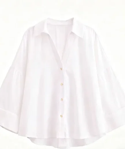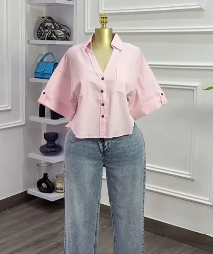 2025 Women’s Loose Summer Trendy Streetwear Crop Top Blouse Casual Long Sleeve Short Length Button Outline