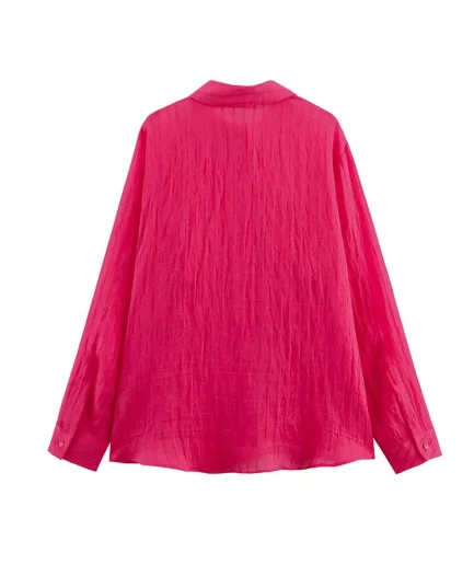2025 Lady Spring Summer Long-Sleeved Collared Button-Down Textured Shirt Casual Breathable and Fashionable Style