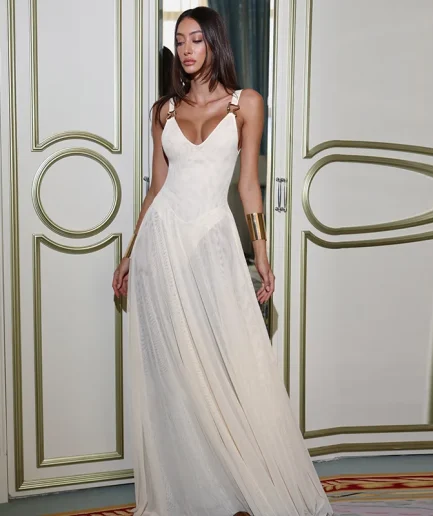 • RedPeony Woman Fashion Sleeveless Backless Summer Sexy Holiday Party Dresses Women Ruffle Slip Corset Dress White Long Dresses