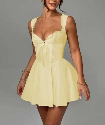 • RedPeony Vintage Dresses Women Trendy High Waist SleevelessV-neck Skirt Lace up Slim Fit Party Dress Sexy Mini Dress for Women