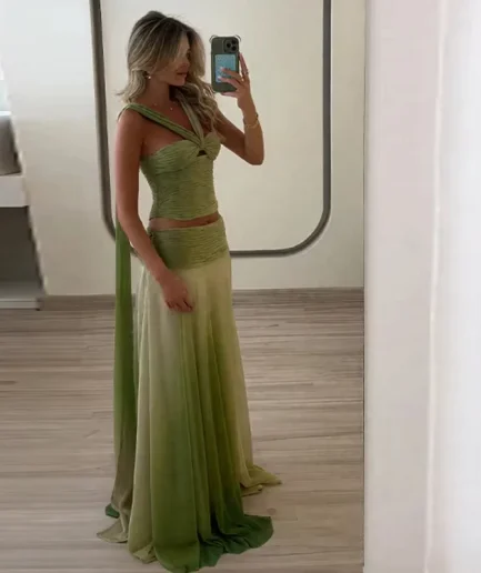 • RedPeony Summer Women Fashion New Style Elegant Lady Neckline Chiffon Half-Dress Set Loose Vacation Beach Wear Women Skirt Sets