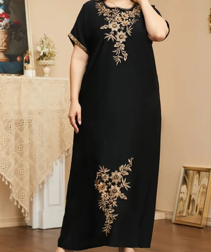 RedPeony Plaque-sized Women’s Embroidered Beaded Loose Casual Dress Batsleeved Long Robe Women’s Long Dress