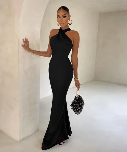 • RedPeony Women 2025 Summer Sexy Halter Backless Sleeveless Dress Elegant Party Club Evening Streetwear Bodycon Women Maxi Dress