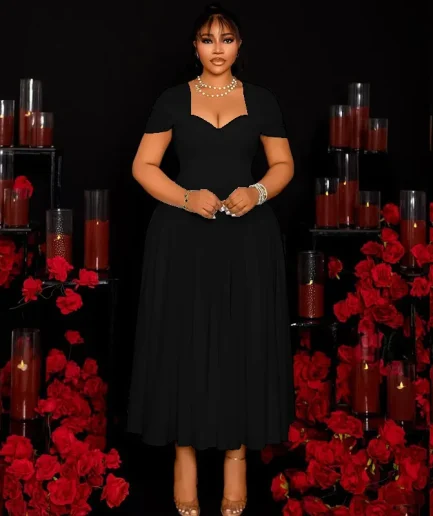 • Women Summer Solid Color Square Collar Casual Plus Size Dress Strapless Slim Fitting Classy Elegant Daily Party Women Mid Dress