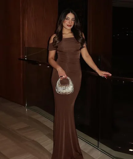• Women Wrap Hips Gown Temperament Slim Solid Color Banquet Long Dress Lady Elegant Off the Shoulder Evening Club Women Maxi Dress
