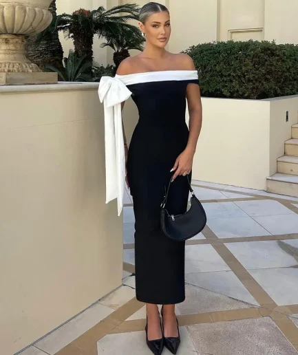 Women’s 2025 Elegant Summer Y2k Bandage One Shoulder Bow Dress Tie Slim Evening Dress Sexy Patchwork Party Women Long Dress