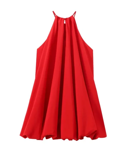 Sweet Vintage Halter Neck Sleeveless Women’s Summer Dress Breathable Plain-Dyed Chiffon Weave Solid Pattern Pleated Silhouette