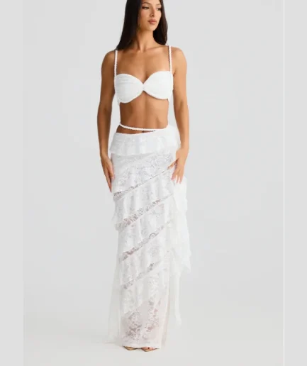 • Summer Lace Sexy Two Piece Sets Women Fashion Strapless Crop Tops and Maxi Skirt Vacation Elegant Beach Party Women 2 Piece Set