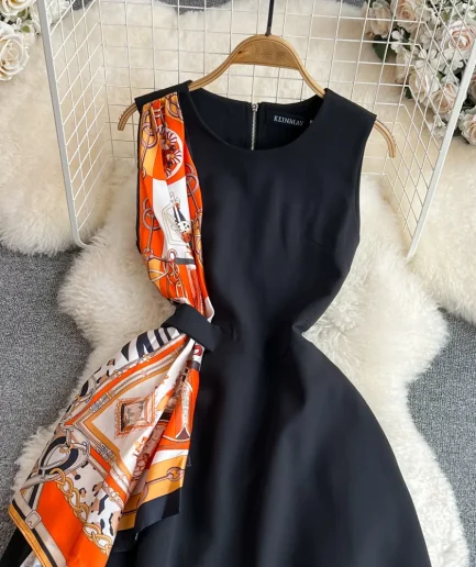 • Summer Sexy Mature Retro Sleeveless Waist Slimming A-Line Ladies Black Vestidos Causal Luxury Lady Elegant Long Dress for Women