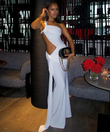 • Irregular Hollow One Shoulder Maxi Dress Women Collar Backless Ruched Kink Ribbon Prom Sexy Party Elegant Vestidos