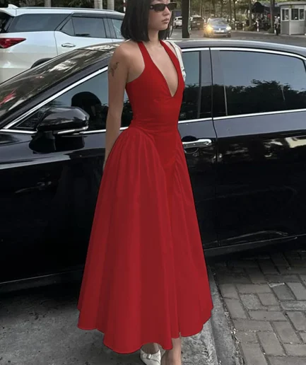 • Halter New Fashion Slim White Sleeveless Long Dress Summer Women's Sexy Party Dress Backless Deep V Spliced Long Dress