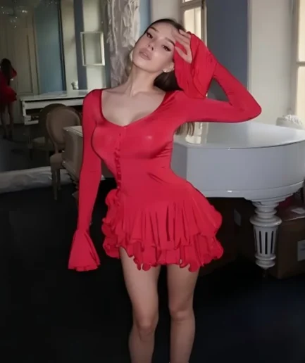 • Flare Sleeve Ruffle Sexy V-Neck Mini Dress Women Robe Irregular Single-breasted High Waist Slim A-line Party Club Dress