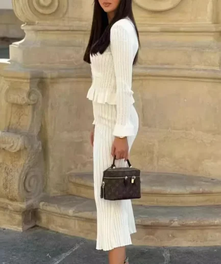 Ladies Skinny Long Sleeve V-Neck One Set Sweater Plus Size Knitted Lounge Wear Slim Top Skirts 2 Piece Sets for Women