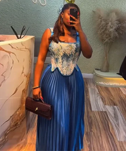 RedPeony 2025 Women Elegant Floral Print Waist-cinching Vest +Pleated Long Skirts Suit Party Evening Street Women 2 Piece Dress