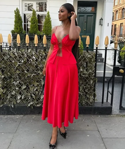 • Fashion Clothes Vendor Sleeveless Irregular Spaghetti Strap Lace-up Sexy Tops and Long Skirt 2 Piece Sets for WomenNew