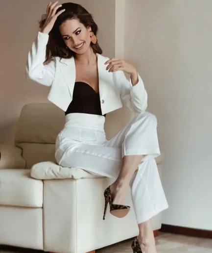 • 2025 Woman Fall Solid Long Sleeve Sexy Crop Top and Pants Women Elegant Formal Office Suits Blazers Wear 2 Piece Sets for LadiesNew