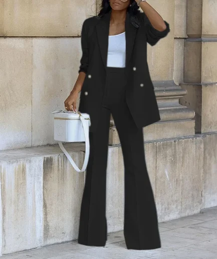 • 2025 Fashion Solid Leisure Suit Office Formal blazer and Flare Pant Set Suits High Waist Wide-leg Pants for Women Work WearNew