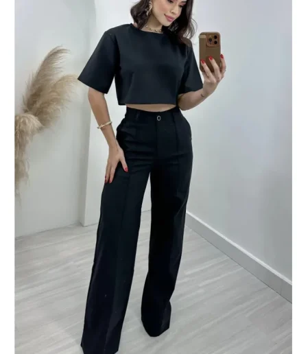 • RedPeony Fashion Cotton Linen Short Top High Waist Wide Leg Suit Pants for Women Casual Office Lady 2 PCS Clothing Set for WomenNew