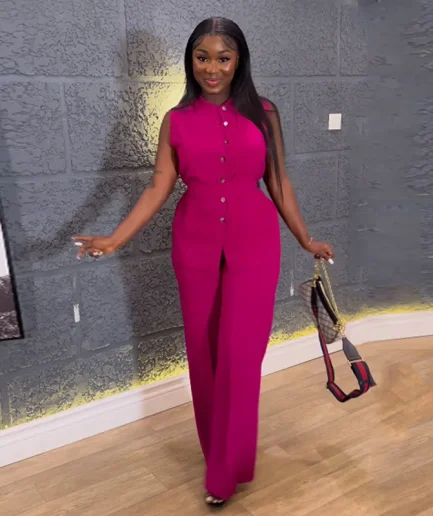 • Trendy Single Breasted Sleeveless Mandarin Collar Top and Wide Leg Pants Boutique 2 Piece Clothing Set Women OutfitNew