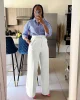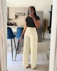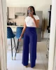 Autumn Casual High Waisted Pants Women Fashion Solid Button Pocket Straight Leg Wide Leg Casual Women Pants