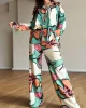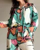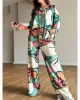 RedPeony Fashion Casual Long Sleeve Two Piece Suit Women Loose Wide Leg Trousers Suits Long Pant Sets Print Shirt Two Piece Set