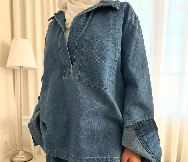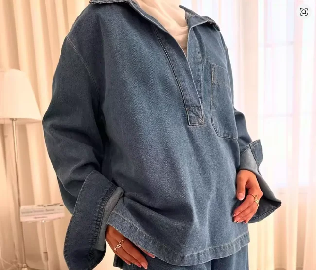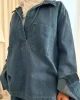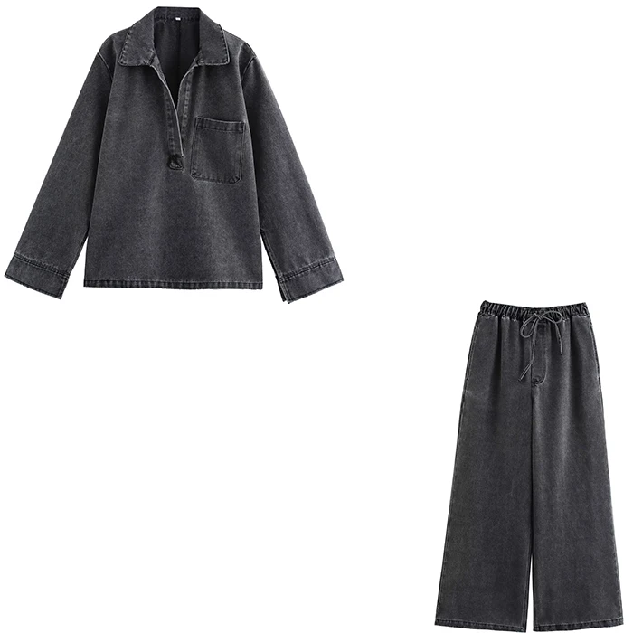 V Neck Long Sleeve Tops+Elastic Straight Pants Fashion 2025 Spring Street Wear Sets Vintage Casual Denim Chic Women Suit