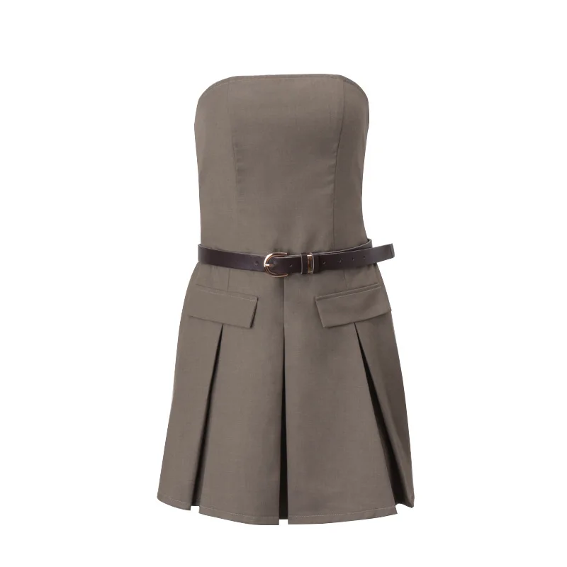 Decoration: Backless, Draped, Pleated, Belt, fake pockets