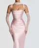 2026 Backless Bodycon Party Midi Dress Vestidos Women Elegant Summer Dress Satin Spaghetti Strap Strapless Sexy Dress