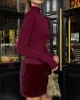 Casual Fashion Mini Dresses Women Turtleneck Full Sleeve Skinny High Stretch Furry Patchwork Hem Christmas Elegant Bodycon