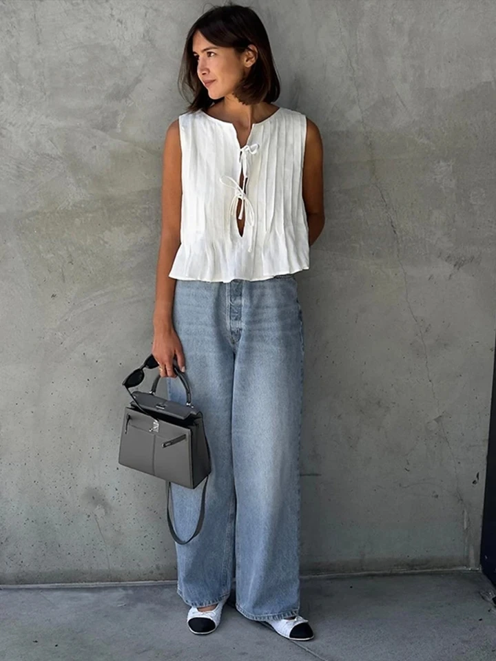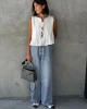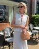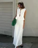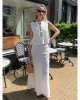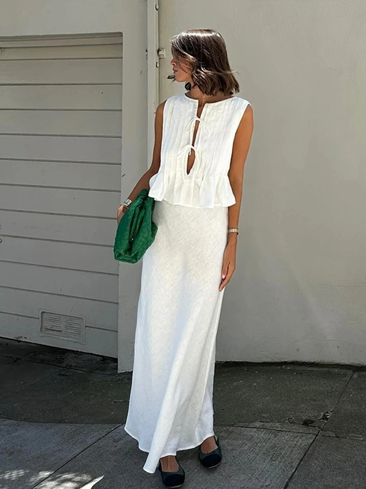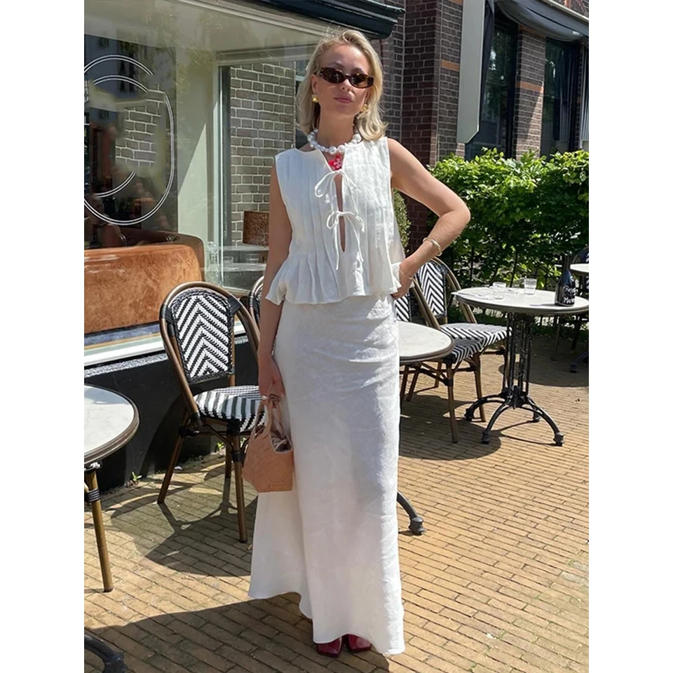 Chic Female Sets Women O-neck Sleeveless Ruffles Tank High Waist A-line Skirts Elegant Solid Lace up Vest Long Skirt Suits