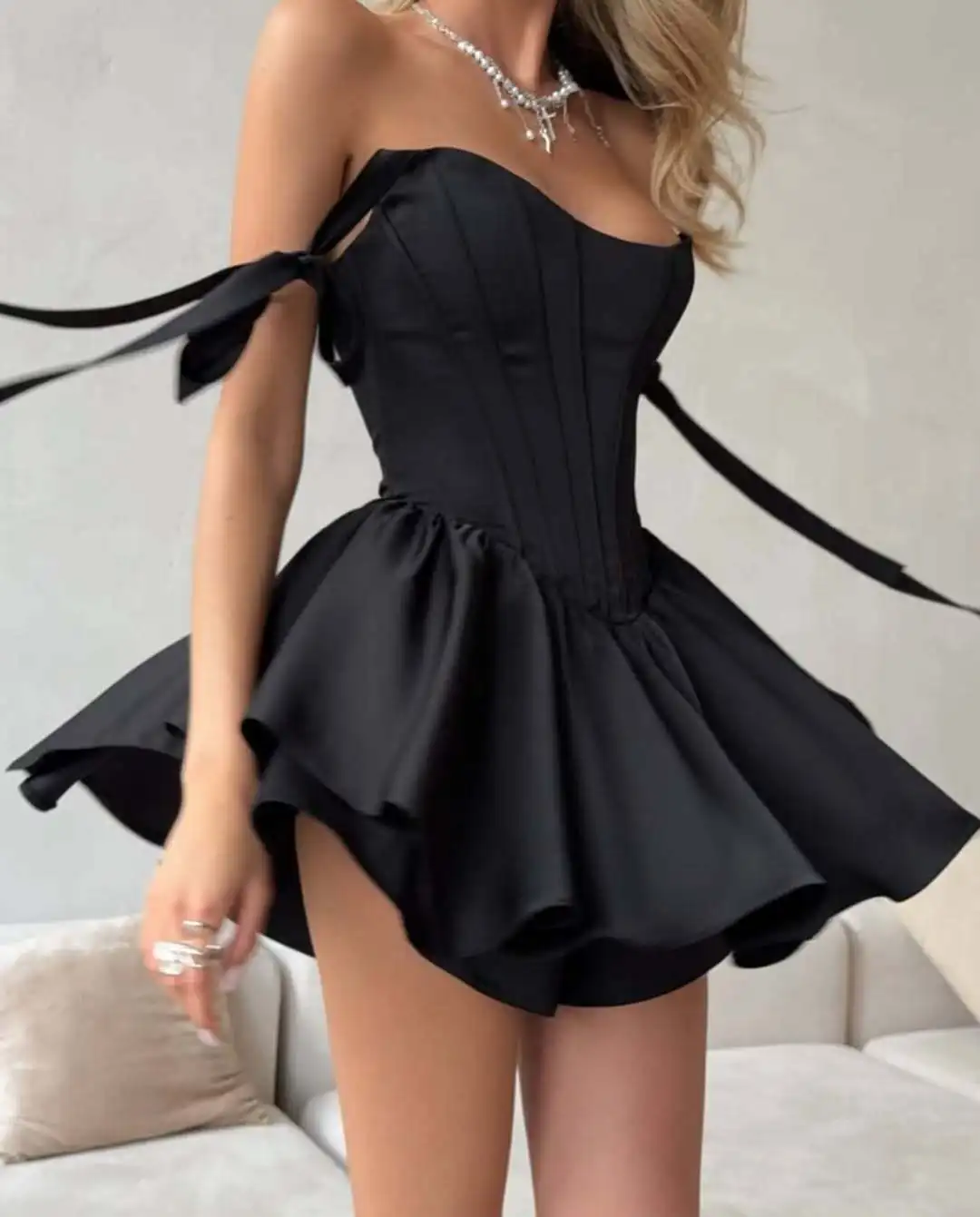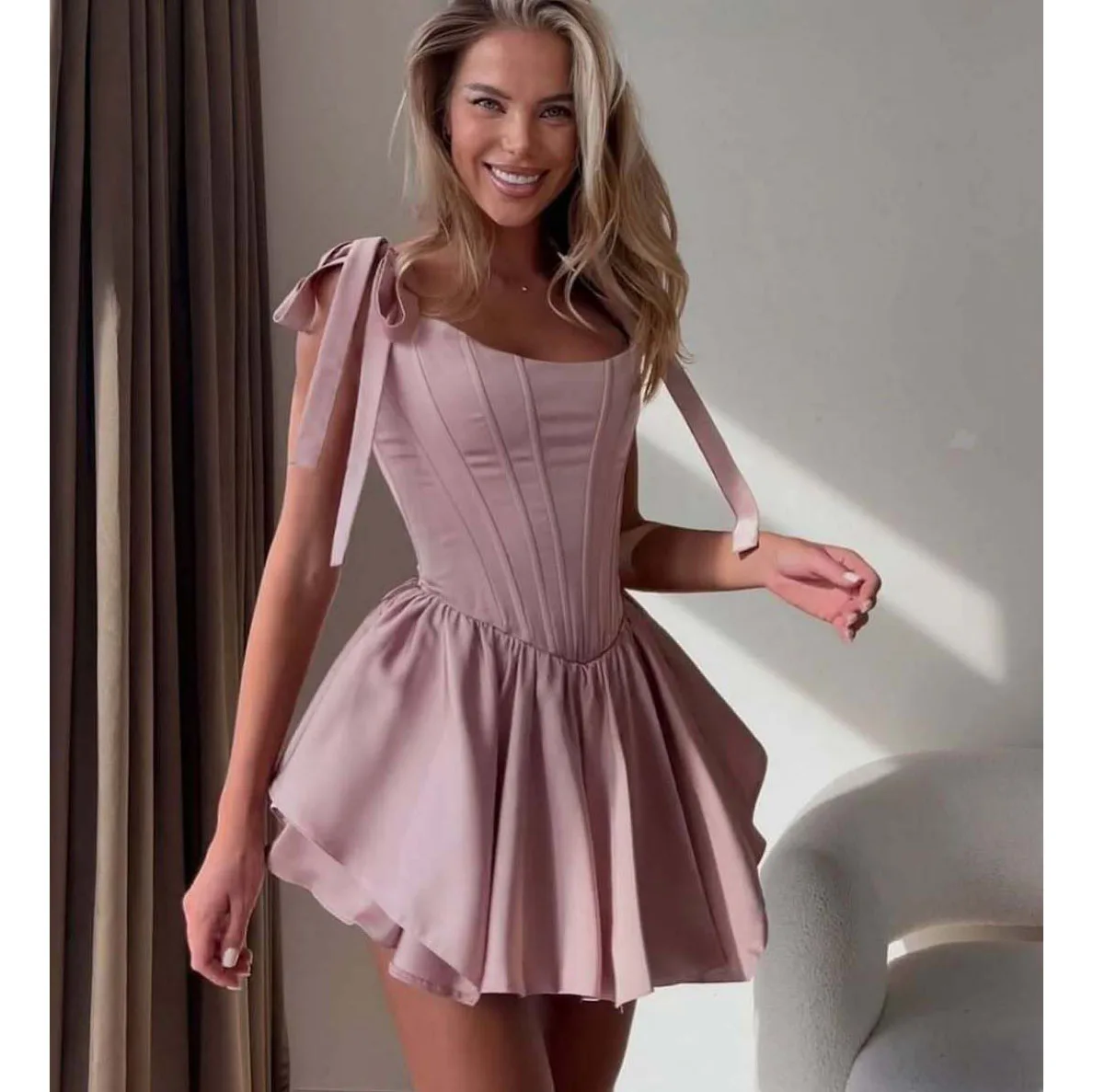 Femininity Exquisite New Pure Desire Temperament Slim Sleeveless Short Skirt French Solid Color Fish Bone Waist Suspender Dress