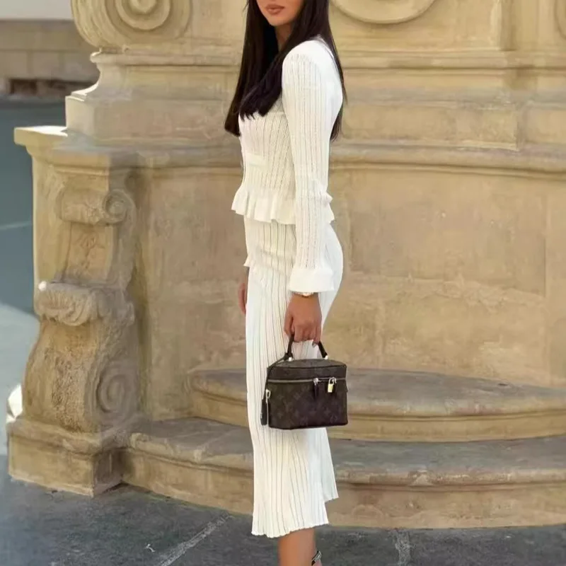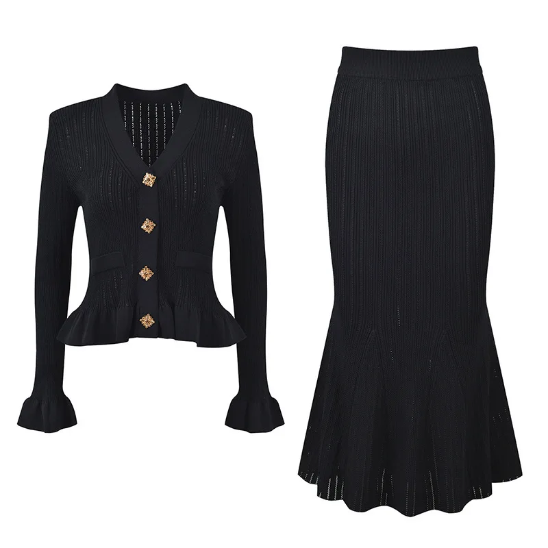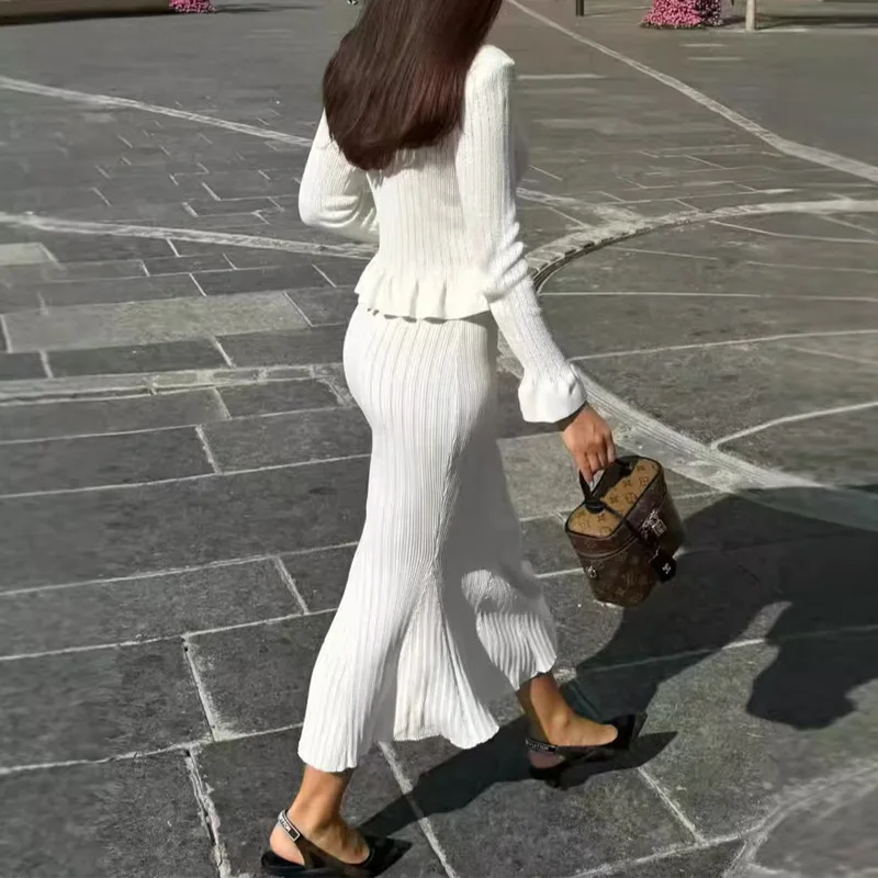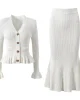 Ladies Skinny Long Sleeve V-Neck One Set Sweater Plus Size Knitted Lounge Wear Slim Top Skirts 2 Piece Sets for Women