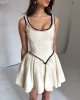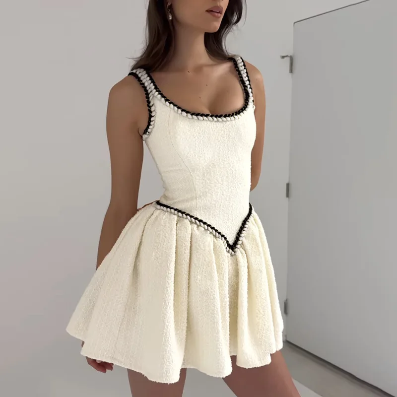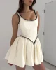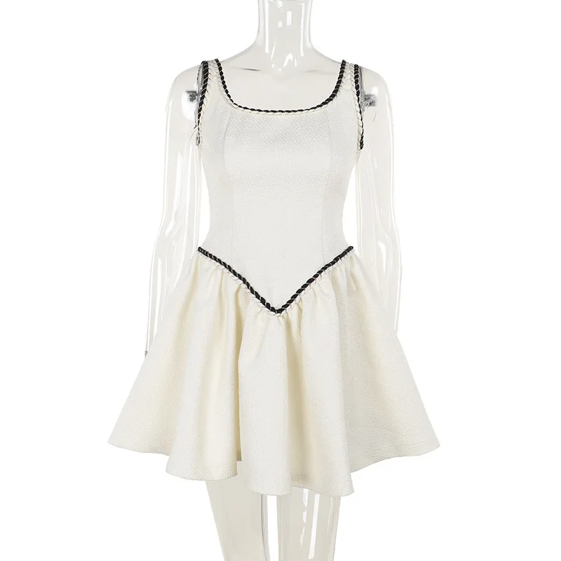 Lady Chic High Street Party Vestidos Women Sexy Low Out Slim Sling Pleated Dress Elegant Sleeveless Patchwork Short Dresses