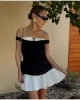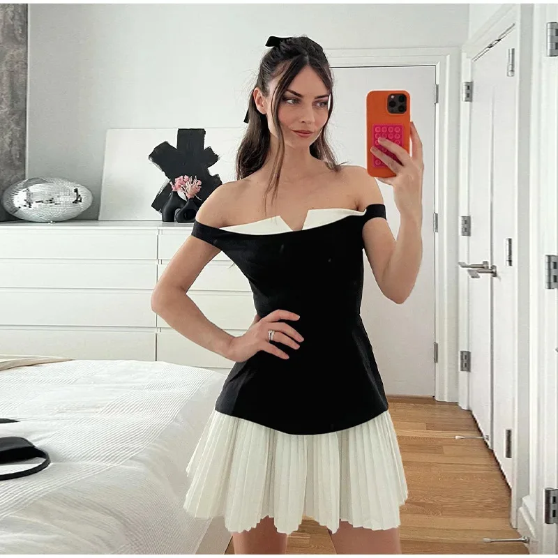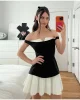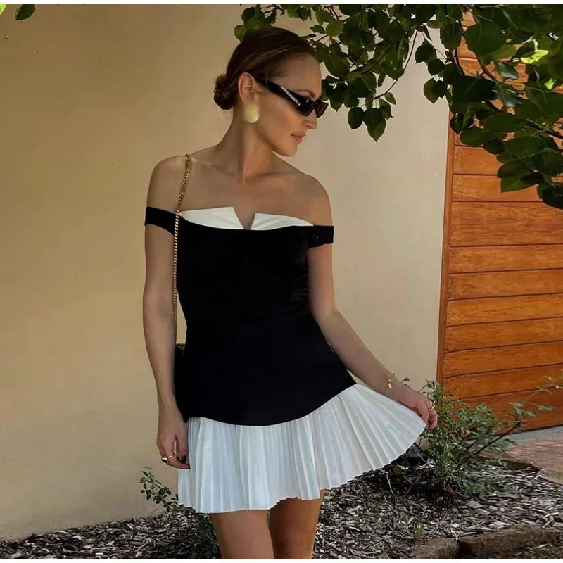Off-The-Shoulder Casual Style Trendy Letter Printed Collar Design Fashionable Women Sleeveless Summer Dress Mini Dress