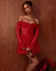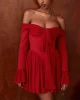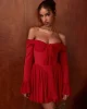 RedPeony Women Fashion Lace Folds Long Sleeve Dress Off the Shoulders Bodycon Splice Sexy Clubwear Slim Women Mini Dresses
