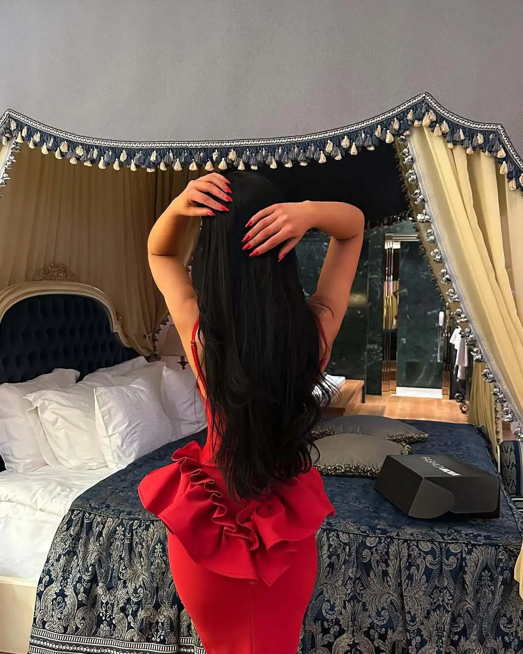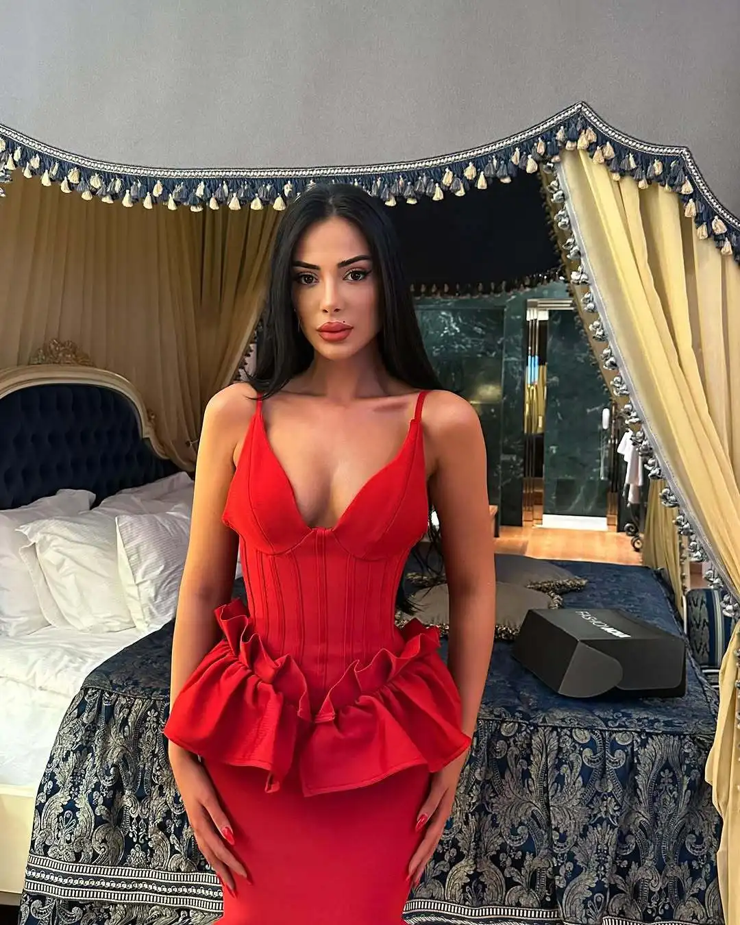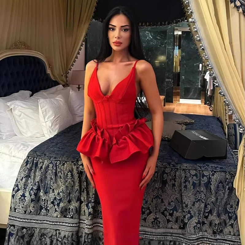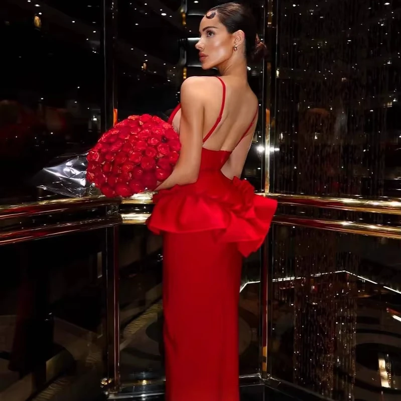 Decoration: Ruffles, Backless, Tiered, High Slit