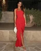 RedPeony Ladies Temperament Formal Dress Form-fitting 3D Floral Sleeveless Slit Asymmetry Elegant Evening Party Women Maxi Dress