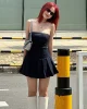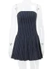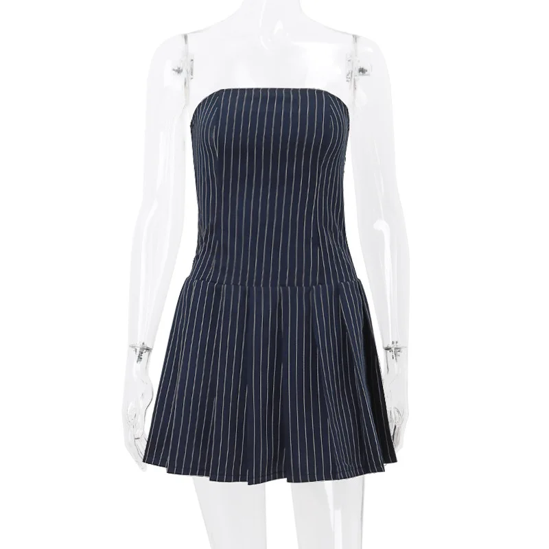 RedPeony Spring Summer Elegant Slim Vestidos Y2K Sleeveless Slash-neck Pleated Stripe Dresses Korean Women Fashion A-line Dress
