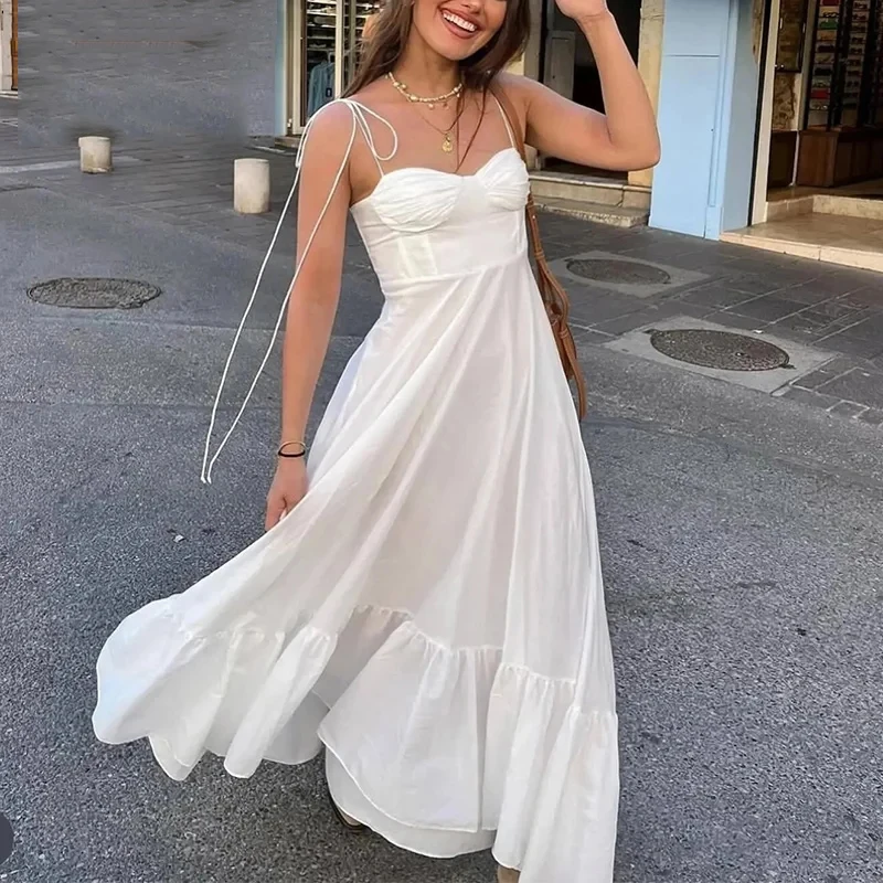 RedPeony Woman Fashion Sleeveless Backless Summer Sexy Holiday Party Dresses Women Ruffle Slip Corset Dress White Long Dresses