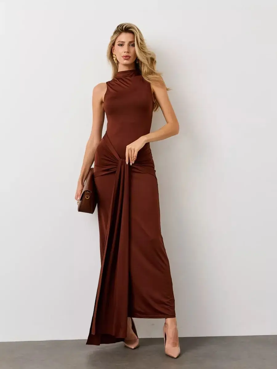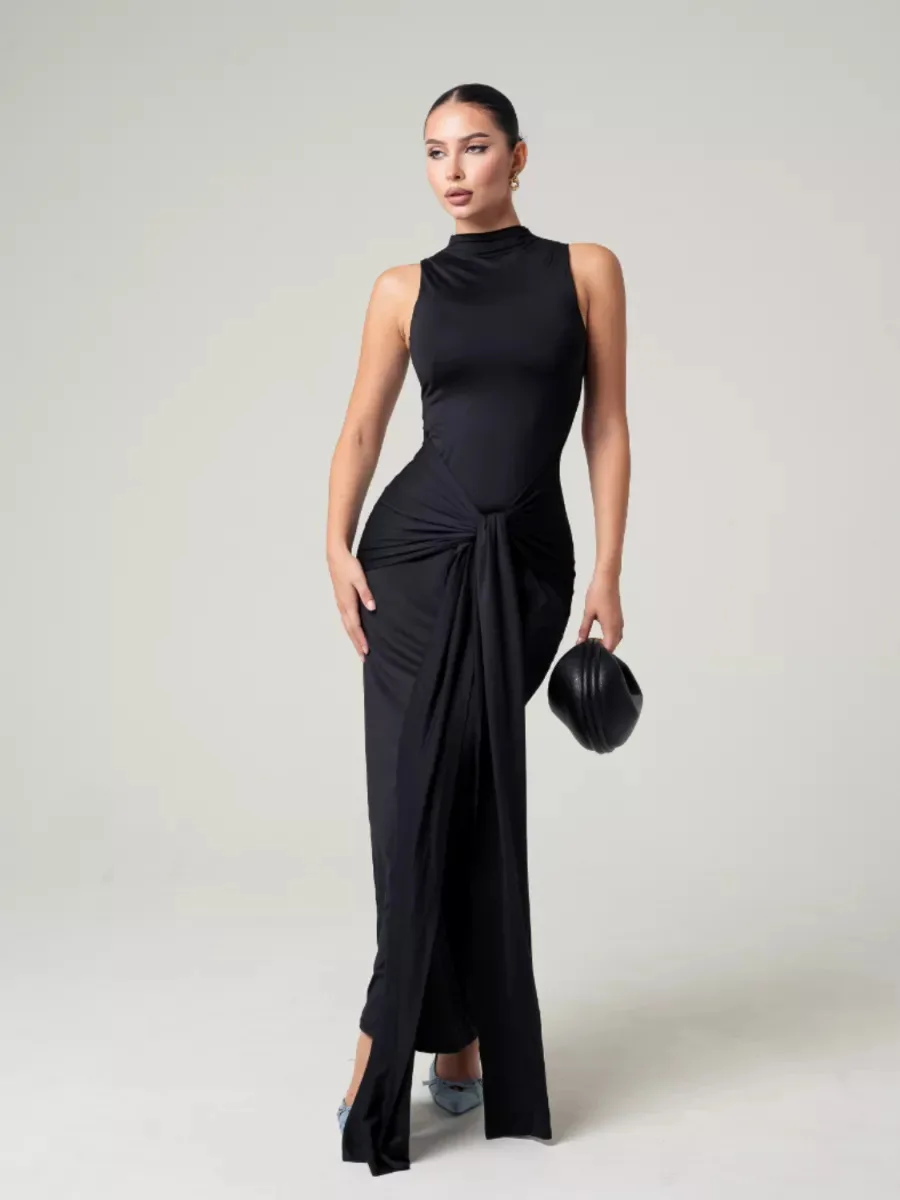 RedPeony Women Outfit Elegant Sleeveless Lace up Tank Top Skirt High Waist Maxi Dress Sexy Slim Fit Bodycon Chic Evening Dress