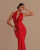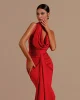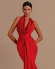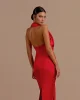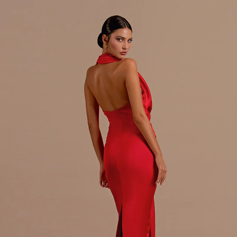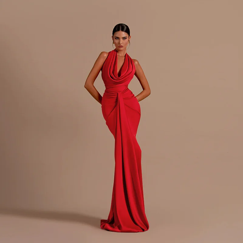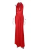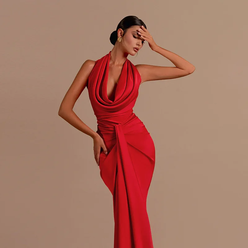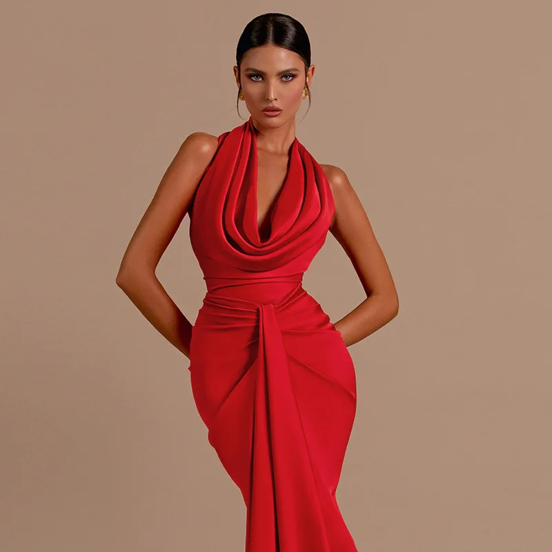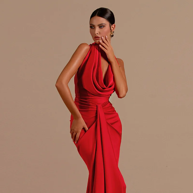 Sexy Swinging Collar Backless Pleated Long Dress Women Red Stain Sleeveless Draped Design Long Dress Club Party Women Maxi Dress