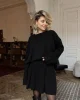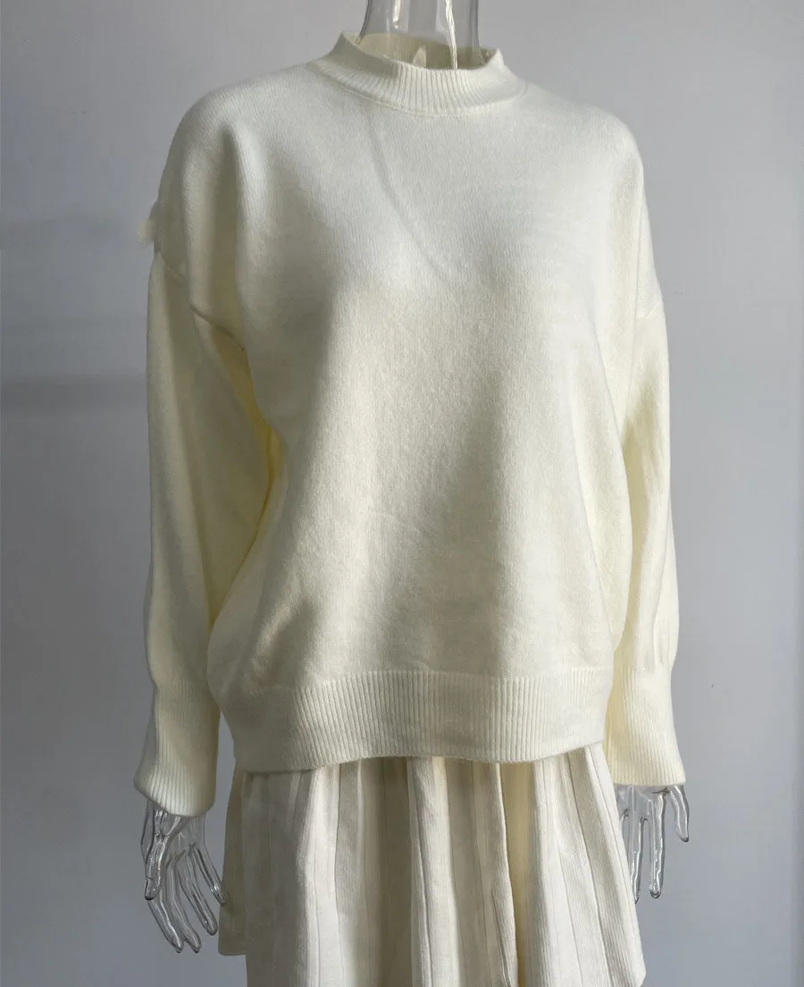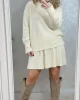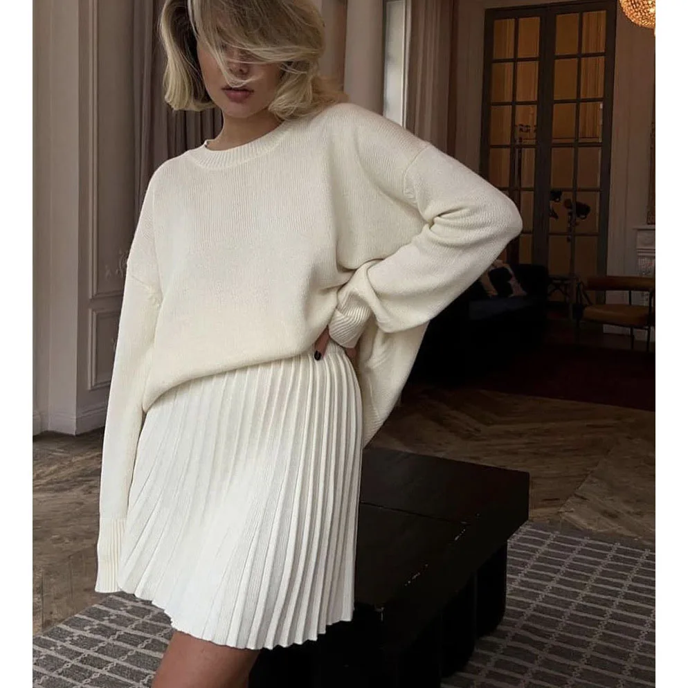 Solid Folds O Neck Mini 2025 New Autumn Winter Skirt Sets Women Fashion Vintage Long Sleeve 2 Piece Set Knitted Sets
