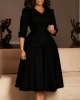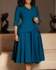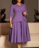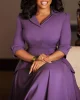 Trendy Spring Casual 3/4 Sleeve Suit Collar V-neck A-line Office Lady Professional Party Elegant African Dress for Women