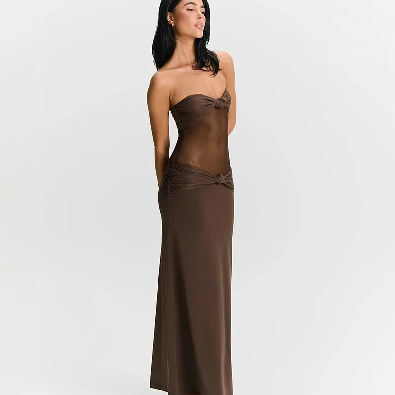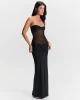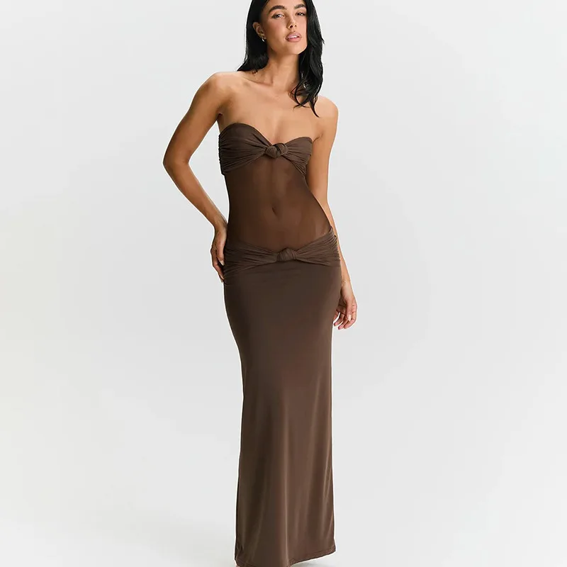 Women 2025 Y2K Wrap Ruched Mesh Patchwork Sleeveless Dress Skinny Stretch Chic Summer Sexy Elegant Party Club Women Maxi Dress
