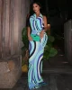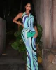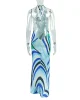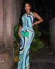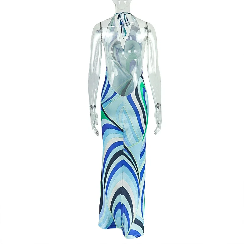 Women Elegant Sleeveless Backless Slim Bodycon Long Dress Fashion Printed Halter Chic Summer Beach Party Women Maxi Dress