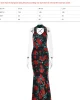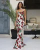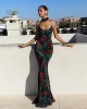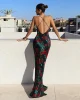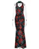 Women Gown Elegant Sleeveless High Waist Evening Club Party Long Dress Halter Backless Print Sexy Maxi Dress