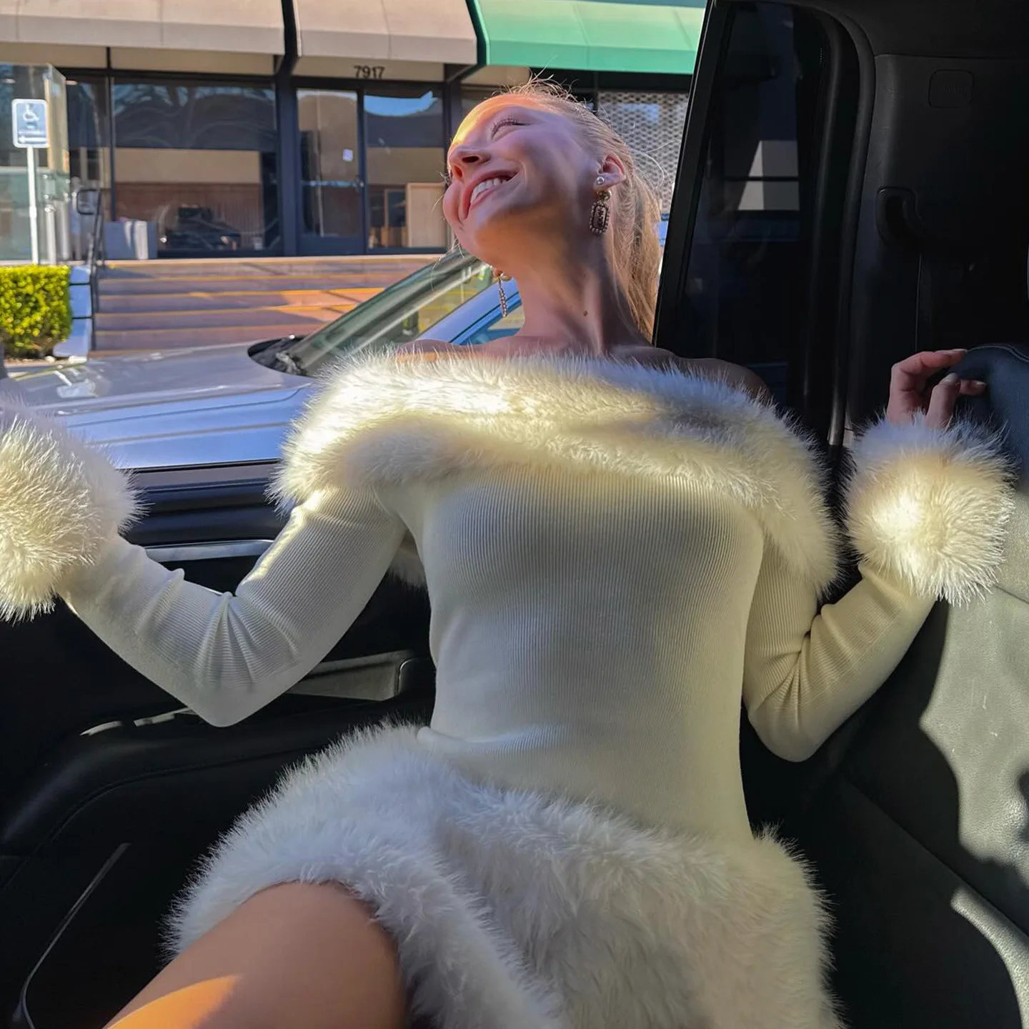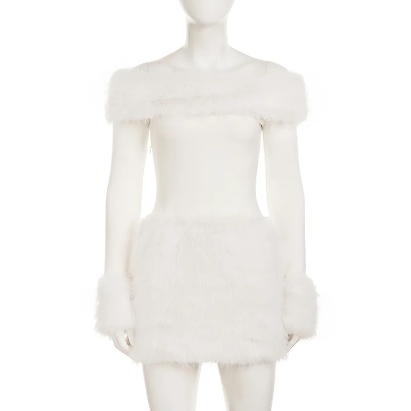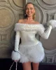 Women Patchwork Full Sleeve Birthday Party Elegant Classic Christmas Party Luxury Bodycon Fluffy Slash Neck Dress