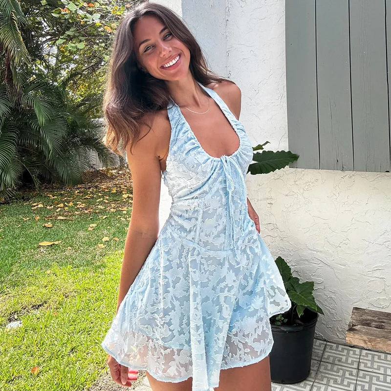 Fashion Element: Vintage, Simple, Backless, Halter Lace Up